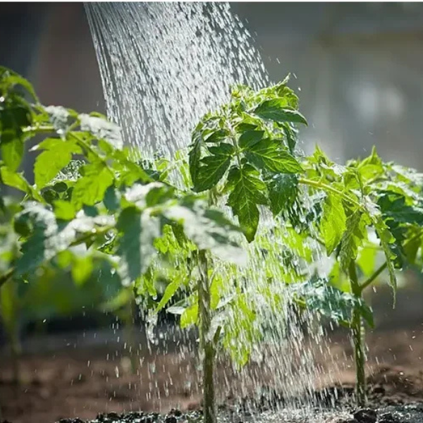 Khoảng thời gian đầu từ 7-10 ngày sau khi trồng. Bạn cần tưới khoảng 500ml cho cây mỗi ngày, tưới 2 lần vào sáng sớm và chiều mát. Tuyệt đối không được tưới vào trời tối. Đối với cây cà chua bạn nên tưới từ thân xuống, không nên tưới phần lá. Vì ẩm ướt có thể gây ra mầm bệnh.